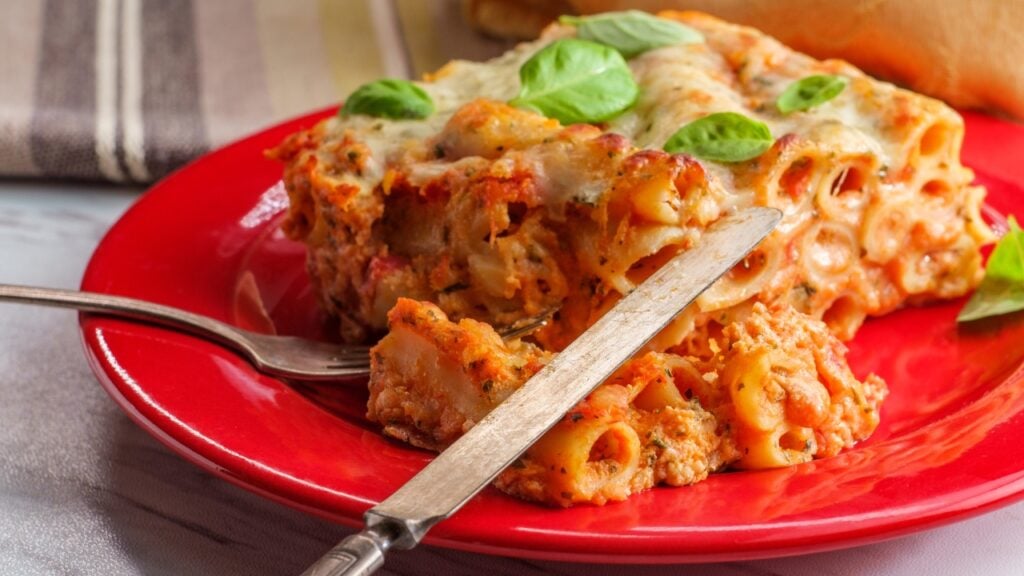 This one always disappears fast and fills a lot of plates. You don’t need ricotta or fancy sauce to make it work. As long as there’s enough cheese on top, people are going to come back for seconds.