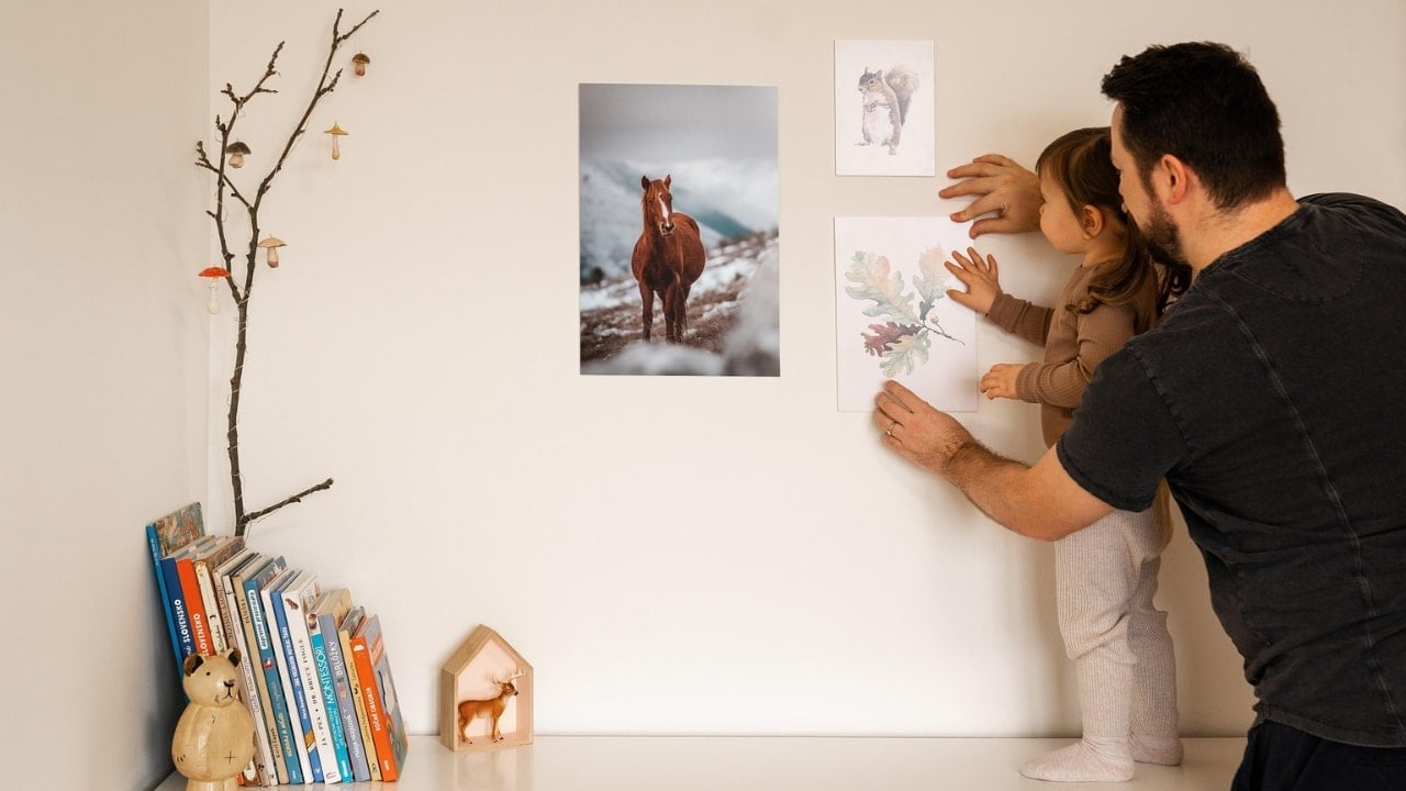 Framed prints and downloadable art add up fast, especially when you want a full gallery wall. I made my own using Canva and free graphics from public domain sites, then printed them with my regular printer on cardstock.