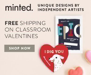 You can enjoy FREE Priority Shipping on Classroom Valentine and Sticker Orders of $35 or more at Minted! Just use the coupon code BEMINE2019 and be sure to place your order by 3 pm PT on Wednesday, 2/6/19.