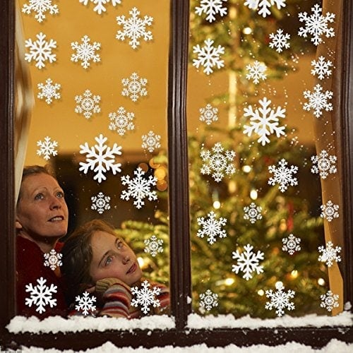 81Pcs White Snowflake Window Clings Christmas Snowflake Sticker Window Decorations,for Christmas,Holiday,Home Decor